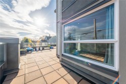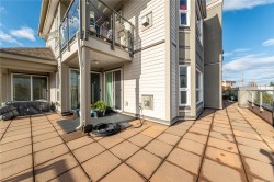 Love outdoor living, gardening, and walkable neighbourhoods? This bright 3 bed, 2 bath home offers nearly 1,300 sq. ft. inside plus an impressive 1,300 sq. ft. of sunny outdoor space—perfect for relaxing, entertaining, or growing your garden. Enjoy direct deck access from three rooms, mountain views with a touch of ocean, and all-day natural light.Recent upgrades include a newer hot water tank, flattened ceilings, and modern pot lights. The Pioneer gas fireplace warms the home beautifully, and gas is included in the strata fee. Located steps from White Rabbit Coffee, Le Brunch, Black Rabbit Restaurant, and the Nanaimo Bar Trail, with the seawall and Old City Quarter just minutes away—an ideal spot for an active homeowner who loves to walk and explore. Rentals and some pets are allowed. Please note: the building does not have an elevator. All measurements approximate; buyer to verify if important.