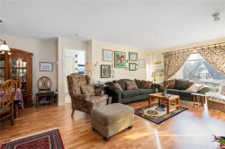 Pond view condo in the very desirable Longwood Community. This 2nd floor unit is just steps from the elevator and stairs and located in the Carisbrook building. Entering the home is the kitchen, which has lots of counter space for all your cooking. The dining room area opens up to the living room, which features a natural gas fireplace, and has access to your balcony where you can enjoy your quiet morning coffee overlooking the pond. The primary bedroom also opens up to the balcony to take in its share of the pond views, and also features 2 separate closets and a 4pc ensuite. On the opposite side of the primary bedroom is the second bedroom, which of course, also has a pond view too, and access to the 3pc main bathroom. A separate laundry room with storage finishes off this unit. Unit 201 comes with 1 underground parking stall, 1 storage locker, and allows for one small dog/cat. This property is walking distance to all your shopping & social needs.