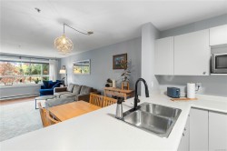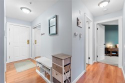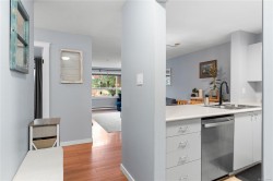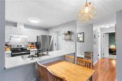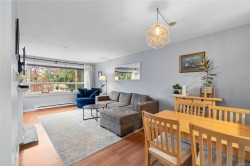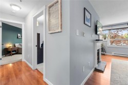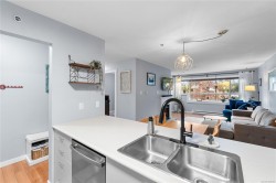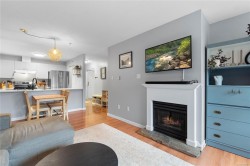 Bright and welcoming 2 bed, 2 bath condo in the well-managed Brechin Views. This updated third-floor unit features modern laminate floors, soft neutral tones, and voice-controlled lighting. The kitchen offers plenty of storage, new appliances and opens to the dining and living area with a cozy gas fireplace. Enjoy the spacious covered deck with access from both the living room and second bedroom. The primary bedroom includes multiple closets and a 4-pc ensuite. Additional perks: in-suite laundry/storage, underground parking, storage locker, and bike storage. Convenient location steps to shopping, the waterfront, and ferry terminals, with quick access to downtown or North Nanaimo. Strata fee includes gas and hot water. One small dog or two cats allowed. All measurements approx.