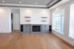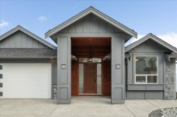 GORGEOUS, OCEAN VIEW level entry, 4,000+ sqft. home in prestigious Oceancrest. Great room boasts white oak, wide plank engineered hardwood floors, cozy fireplace, 10-ft coffered ceiling, built-ins & panoramic views of the Salish Sea, Winchelsea Islands & mainland mountains. Gourmet kitchen features custom cabinetry, quartz counters & large work island. Adjoining dining area offers access to the large rear deck. Primary suite boasts a reading nook w/ cozy fireplace, WIC, deck access & ocean view! 5-pce ensuite has soaker tub, 5 ft WI shower, double vanity, make-up station, one-piece toilet w/ bidet. A spacious bedroom, 4-pce main bathroom & laundry room completes the main floor. The mid-level offers a spacious family rm w/ access to the covered rear deck. It also offers a second primary bedroom (with 3-pce ensuite & WIC) & two additional bedrooms share a 4-pce bathroom. Lower floor offers a games room w/ wet bar, access to the rear patio /yard (with a view) and a legal 2-bedroom suite.