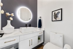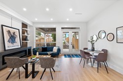 The best Duplex in town! Only 1 remaining brand new home in GlenBrooke North which has everything you need: high ceilings, privacy, ample sunshine, A/C, HRV, radiant floor heating & security cameras. Open kitchen features a 5 burner gas stove, waterfall kitchen island, s/s appliances, garburator for convenience, and a modern family room overlooking the open patio w/ BBQ gas connection and big backyard. The spacious living and dining areas have a 60" fireplace whilst the luxurious powder room feels like a 5 star hotel. Upstairs, there are 3 bedrooms with ensuites. Below has a potential 2 bedroom suite w/ bath & separate entry, a great mortgage helper or can be used as a flex space for storage, home office, or gym. Level 2 EV ready carport. Walking distance to all levels of school.