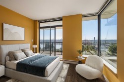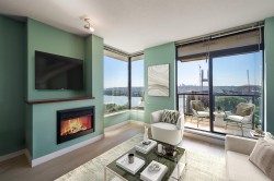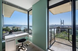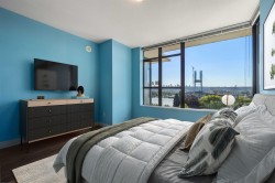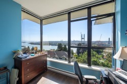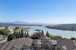 #1003 11 E Royal Ave at "Victoria Hill" Queens Park, New West. Concrete high-rise by Onni Grp. 3 bdrm/2 bath 1,217 SF & balcony 125 SF. In-suite laundry, floor-to-ceiling windows, expansive views of the Fraser River from all windows & balcony. Hardwood floors, modern resort style living: bike room, outdoor pool, hot tub, gym, sauna, large party rm, theatre/library/lounge, billiard/games rm, kid's play rm, 2 guest suites & caretaker. Walk to Glenbrook Ravine, Sapperton Landing, trails & green spaces, 2 bike routes to Vancouver. Sushi & convenience at the base of the towers. Walk to New West Quay, craft breweries, restaurants, coffee, boutique shopping, Columbia Skytrain, Royal Columbian Hospital. 2 pets permitted + rentals, 1 underground parking/storage locker. Schools: Ecole' Qayqayt K-7