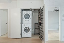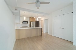 Welcome to Parkside in the highly sought-after Victoria Hill community. This shouth-facing 1 Bd + Den features an efficient open-concept layout with 9 ft ceilings, a modern kitchen with quartz countertops, SS appliances, a gas cooktop, and a large balcony w/ floor-to-ceiling windows that fill the entire home with natural light. Enjoy unobstructed views of the Fraser River, Queens Park & Woodlands memorial Garden. The bedroom offers access to the balcony and a large walk-in closet. Only 5 min to transit, the Quay, parks & Aquatic & Community Centre. Low strata fees include access to resort-style amenities: a hot tub, outdoor pool, fully equipped gym & yoga studio, theatre room, party room guest suites & on-site concierge. Rentals and pets allowed. Includes 1 parking and 1 locker.