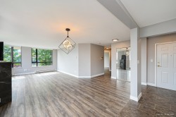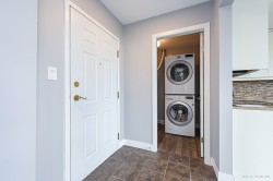 Best value in the area with lots of updates and reno! This 2-bedroom, 2-bathroom corner unit home features open concept kitchen with large island. Spotless and move in ready! Both bathrooms are tastefully updated, waterproof vinyl flooring, newer washer and dryer, electric hot water tank, wall/ceiling paints, and more. Steps to Queen's park. Easy to show. Book your showing today!