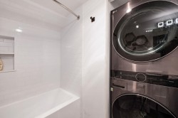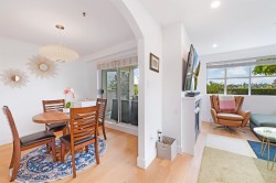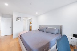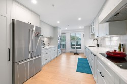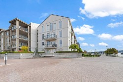 WATERFRONT LIVING AT ITS FINEST! Beautifully renovated 2 bed/2 bath corner unit (1,193 sf) with 2 patios & year-round Fraser River views. Interiors by Tripledot Design and fully renovated in 2023 by award-winning Level One with City permits ($250K+). Gourmet kitchen with Bosch & Miele appliances, Caesarstone counters, custom millwork and pantry. Spa-inspired ensuite with Riobel rain shower, Kohler sink, Toto toilet, custom vanity & linen closet. Engineered hardwood flooring throughout, pot lights, updated electrical & plumbing. New LG washer/dryer. Cozy fireplace with custom surround. Huge storage room outside unit + a separate. locker. Venice-inspired building with lush courtyards. Steps to restaurants, River Market & SkyTrain.