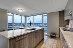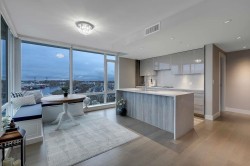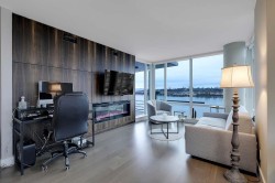 The Peninsula- Luxurious Immaculate Modern Open concept South east facing end unit with 2 bedrooms and 2 bathrooms, 270 degree views of Fraser River and mountains. Quiet and serene, this unit comes with floor to ceiling windows, hardwood floors, chefs kitchen with Gaggenau appliances, center island, quartz countertops. Bright sunny with linear fireplace, geothermal heating and cooling and spa inspired bathrooms. Freshly painted. Resort style amenities , Concierge, Entertainment Lounge, Guest suite, Fitness center, whirlpool, steam room, Theater room and 1 Parking. Close to all amenities like Recreation, Schools, Shopping center, Parks, Costco and Q2Q Ferry. Easy commute to Richmond, Burnaby, Surrey and New Westminster Skytrain. Waterfront living at its Best!