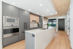 NEW PRICING & MOVE-IN READY! Designed for distinction, Timber House by Aragon is the final waterfront addition to Port Royal in New West. This 2-level, 2 bedroom, 2.5 bath, 1268 SF ground-level home offers 545+ SF of outdoor space & modern, high-design interiors with exposed CLT panels, wide-plank oak floors, A/C & more. Sleek kitchen w/ Fisher Paykel & Smeg appliances, quartz counters, matte black hardware, built-in pantry. Spa-inspired baths w/ heated floors, LED vanities, frameless glass showers. Amenities: Courtyard, gym, BBQ area & dog wash. 2 parking (EV opt), 1 locker. Steps to boardwalk, 12 min to DT New West, 35 min to DT Van. Sales Centre OPEN Saturday/Sunday and Mondays from 1 to 4 pm or by private appointment.