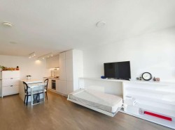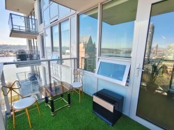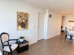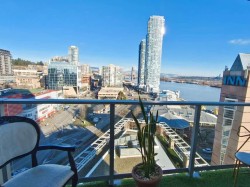 RiverSky 1 by BOSA- A southeast balcony offering BREATHTAKING views of the Fraser River and Mountain with 1 Bed/1 Bath of 562 sqft, features an open-concept layout, natural light, Extendable island which acts as your eating area and extra folded bed in living room. A modern finishes kitchen, including granite countertops, stainless steel appliances, and laminate flooring. Amenities include: concierge, fully fresh storage for delivery service, gym, yoga studio, Lounge with full kitchen, rooftop terrace, etc.1 Parking &1 locker. Steps to Quay Market, Boardwalk, cafes, restaurants, SkyTrain , shopping and urban living convenience. Open House 2-4pm