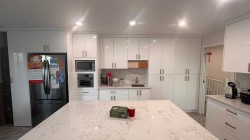 Solid and Updated 2-level bungalow nestled on the high side of a quiet street in prestigious Massey Heights. Main floor features 4 spacious bdrms, updated windows, brand-new kitchen with modern cabinetry, granite countertops & quality appliances. Basement suite has been fully renovated and transformed into a self-contained suite, offering an excellent mortgage helper or space for extended family. The suite with 4 bdrms includes a newly installed high efficiency furnace & heat pump, showers and hardwood flooring. This air-conditioned home offers a perfect blend of comfort, modern updates, making it an ideal choice for both families and investors seeking a solid property in a prime location. Close to Westburnco Court, Burnaby Crest shopping plaza, schools and parks.