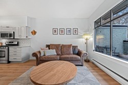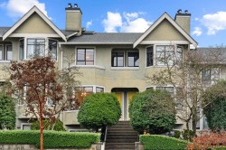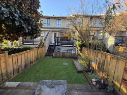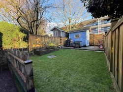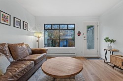 Unique 2-level townhome in a boutique English-style complex on a peaceful no-through street. This home stands out for its rare large backyard directly off the main level, superb walkability and privacy. Strata Fees include HEAT, HOT WATER and GAS! Inside: 9 ft ceilings, new flooring, bright family room with walkout access to a private patio and fenced yard, ideal for kids, pets, gardening, or morning coffee and evening wine. Cozy living room with gas fireplace and dedicated dining area add great usability. Upstairs are 2 bedrooms + skylit den perfect as an office, nursery, or 3rd room. Large attic allows for additional storage. Features include 2 secure underground parking stalls, front and lane access, and recent building repiping. Location: skytrain, parks, schools, cafes, shopping!