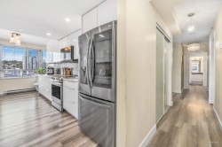 Perched on the 16th floor, this expansive 1,498 sq. ft. suite showcases breathtaking sunset views of the Fraser River from its coveted corner position. Featuring 3 bedrooms + den, 2 balconies,1 parking,oversized windows, and overheight ceilings, this home is flooded with natural light. Located in the heart of the Quay, just steps to the scenic boardwalk, Public Market, SkyTrain, Douglas College, and quick access to Richmond, Surrey, Coquitlam, Burnaby & Vancouver. Upgrades include new acrylic kitchen cabinets, quartz counters, gas fireplace, laminate flooring in all bedrooms. Resort-style amenities: multiple gyms, swimming pool, hot tubs, sauna, billiards room, workshop, guest suite, library, bike storage, craft room, and party room.