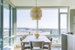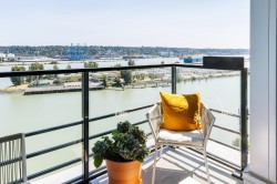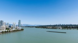 Welcome to the Peninsula at Port Royal in Queensborough-LOCATION, CONVENIENCE & LUXURY Resort-Style LIVING! This beautiful 2 bed + 2 bath corner unit offers panoramic views of Fraser River, mountains & city skyline. Modern kitchen equipped with quality built-in appliances/ample cabinetry & large island & engineered hardwood throughout. Enjoy exclusive amenities including full-time concierge, theatre room/gym/party lounge/swirlpool-hot tub/steam room & guest suites. Perfect for down-sizers & first-time buyers/families alike. Growing, friendly community with local parks & schools QE Elementary/Queensborough Middle nearby, & easy 5 minute access to New West (Anvil) Centre via convenient "Q to Q Ferry" to New West Skytrain/public transit, local shopping & eateries. Parks & easy access to hwys.