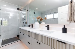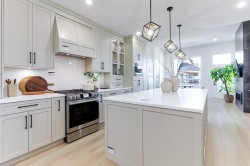 Brand New Luxury Home in Queensborough! This stunning 3024 SqFt. residence showcases modern design, quality craftsmanship, and exceptional functionality. With 6 bedrooms and a den plus 6 bathrooms mostly with ensuites it offers flexible living for families of all sizes. The layout includes a legal suite that can be configured as a 1 or 2 bedroom with lock-off option – ideal as a mortgage helper, in-law suite or private guest space. Enjoy radiant flooring heating, air conditioning, LED lighting and security. A double tandem garage with back lane access adds convenience. Located in the vibrant Queensborough community & minutes to schools, parks, Costco and the Skytrain Station. Backed by a 2-5-10 home warranty and move-in ready.