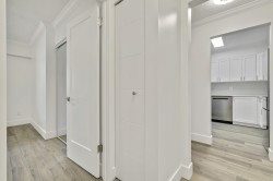 Completely updated 1 bedroom 1 bath apartment in a great location and very well maintained building. Faces a quiet, tree lined street within 10 minutes walk to Skytrain, and close to the brewery district, shops, transit, parks, Royal Columbian hospital and easy access to Hwy 1. This bright unit features SS appliances, new cabinets, new flooring, new paint and new counter tops! One storage locker and one parking spot included with additional parking on the street. Convenient shared laundries are located on each floor. Only 38 units in total makes for a pleasant, friendly building. (No Pets allowed)