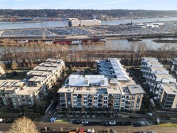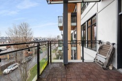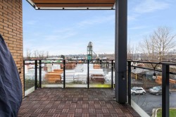 Loft-style 1 bed, 1 bath condo at #303–300 Salter Street in New Westminster. This stylish home features an exposed brick feature wall, open-concept layout, and premium Monogram appliances with a gas range. Northwest-facing city and mountain views offer stunning sunsets and natural light. Step outside to the Riverwalk at your door and enjoy convenient access to the ferry connecting to New West Quay. Ideal for professionals seeking a unique urban lifestyle close to transit, shops, dining, and the waterfront.