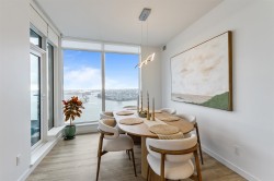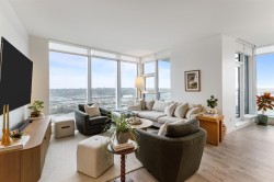 Welcome to BEST VALUE ($225+K BELOW PURCHASED PRICE) at Pier West—New Westminster's premier waterfront address by renowned developer Bosa.Perched high on the 32nd floor of this iconic West Tower, this exceptional residence delivers the ultimate in modern luxury living with forever-unobstructed views of the Fraser River and vibrant city skyline. Light-filled home featuring floor-to-ceiling windows that flood every room with natural light and showcase those breathtaking river vistas from morning coffee to evening sunsets. The open-concept layout is perfect for effortless entertaining — a sleek gourmet kitchen with premium appliances,gas cooking,solid-slab countertops,waterfall island,and integrated finishes flows seamlessly into the generous living and dining area.