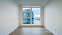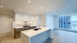 Suite 3807 at Pier West by Bosa. New, never lived in. Bright, open-concept living in this spacious 2-bedroom+den, with far reaching views and close in river view. Functional layout. 10,000+ sq. ft. of amenities include a barbeque terrace, party & dining room, concierge, fitness centre, sauna, steam room, and lounge. One parking stall and storage locker included.