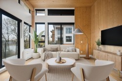 NEW PRICING & MOVE-IN READY! This 2-level, 1,526 SF 3 bed, 2 bath PENTHOUSE at Timber House by Aragon blends modern design with nature, featuring direct river views, exposed CLT walls/ceilings, skylights & a 435 SF private roof terrace with outdoor kitchen (BBQ, sink, fridge) & stunning riverfront outlook. Interiors include wide-plank oak floors, A/C & a sleek kitchen with F&P + Smeg appliances, quartz counters & built-in pantry. Spa-style baths offer heated floors & floating vanities. Amenities: landscaped courtyard, gym, BBQ area, dog wash, 2 parking (EV-ready opt) & storage. Steps to the boardwalk, 12 min to DT New West, 30 to YVR, 35 to DT Van. Sales Centre OPEN Saturday/Sunday and Mondays from 1 to 4 pm or by appointment.