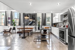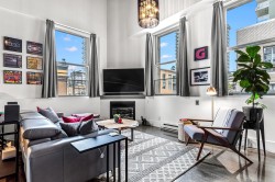 Step into this stunningly updated one bedroom, one and a half baths, loft, where modern elegance meets timeless charm. Featuring soaring ceilings, oversized windows, and an open concept layout, the space is flooded with natural light and thoughtfully designed for both comfort and style. The updated kitchen boasts high-end finishes, sleek cabinetry and stainless steel appliances, while the spacious bedroom offers a peaceful retreat. Ideal for entertaining or relaxing, this loft is a perfect blend of sophistication and function in every detail. Conveniently located in Downtown New West; close to transit, shopping, Skytrain and entertainment district. OPEN HOUSE SUNDAY FEB. 8, 12 TO 2 PM.