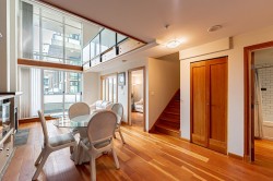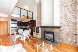 Rarely available 2-bedroom + den loft at the New West Quay! This stunning 989 sq.ft. home faces west into the quiet courtyard with partial river views. Features include beautiful hardwood floors, double-nosed granite countertops, Kohler fixtures, and 17’ floor-to-ceiling windows that fill the space with natural light. Includes 1 parking stall. Don’t miss this exceptional home at the Murano Lofts! The den could be used as third bedroom, functional layout! MUST SEE!