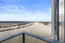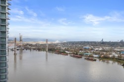 PRICED TO SELL! NEW PRICE! WATERFRONT brand-new luxury condo at Pier West by BOSA! Amazing unobstructed view of River , mountain, & Alex Fraser Bridge, this corner unit offers 2 separate bdrm, 2 full bath & Den (could be 3rd bdrm for kid), spacious and functional open concept living room and dining room, Modern kitchen and baths, featuring quartz island and waterfall countertops, premium Bosch appliances, gas range, and double-door fridge ,soft-close cabinetry, A/C, half covered balcony. 2 Parking incl. 1 EV Charger and 1 private locker room. First Class amenities include; 24 hours Concierge, Fitness centre, Private dining lounge, steam & sauna. Located just steps from Skytrain, shops, market and services,seamless enjoy quality life style. Open house Jan 31 (Sat) 2-4 pm.