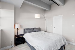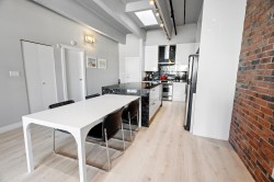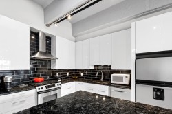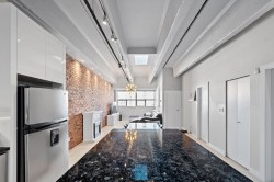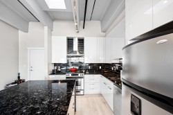 Welcome to a New York style loft in New West! Located in the Uptown neighborhood, you can walk to so many stores and restaurants from this central location. Featuring over 10 foot high ceilings, large windows, concrete beams, and skylights, this converted 2 bedroom loft has been recently renovated. The centre island kitchen with gas stove and a huge granite island with waterfall edges was planned by a professional Chef. Check out the custom real brick wall! 1 parking spot is included and there are many extra spots available for rent. Homes like this one are rarely on the market. The Strata here is well managed, and there is a great variety of shops on the ground floor of the building.