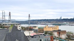 Central downtown New Westminster 866 sq ft*, 2 bdrm just steps to Skytrain station, New Westminster Quay, restaurants, shopping, cafes, Landmark cinemas, Douglas College & more! Spacious & open layout with a nice like new kitchen with arborite counters, double sink, SS appliances & subway backsplash, vinyl & laminate floors, gas fireplace, closet organizers, newer counter bathroom vanity, NEST smart thermostat European washer/dryer combo. Fantastic views! 1 secured u/g parking stall & storage locker. Pets & Rentals allowed with restrictions. Newly re-piped by the Strata. This suite has it all! *Measured by Almond Tree Media; Strata Plan shows 849 sq ft. Buyer to verify if deemed important SEE A VIDEO TOUR using this link https://youtu.be/AHFtIcC1_y4