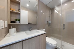 Experience luxurious urban living in this exceptional 2-bedroom apartment perched in downtown New West with unbelievable views of the city, river, bridges, see the entire city in a new way. Boasting a sizable 961 sqft interior with a stunning city view, this move-in ready unit features polished quartz countertops, sleek Kohler sinks, and energy-efficient Bosch appliances in the chic kitchen. The seamless flow from the bar seating area into the spacious living room exudes modern elegance. Enjoy the stylish cabinetry, thoughtful design accents, and a generous balcony for outdoor living. With its prime location and impressive amenities, this apartment presents an unparalleled opportunity for a sophisticated and rewarding lifestyle in the heart of New Westminster.
