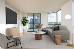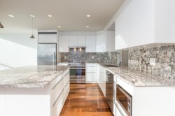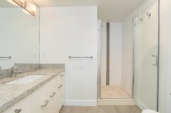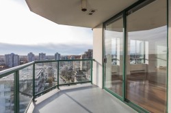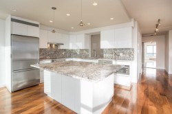 Located in the heart of New Westminster's Uptown area, in a Bosa built, well manage concrete building. Walking distance to shopping and sky train. This beautifully updated, open floor plan, 2 bedroom, 2 bath, plus den and separate laundry room home, features south west views of the Fraser River, engineered walnut floors, porcelain tile, wool carpets. The kitchen has granite counter tops, and large island with seating for four, Fisher & paykel, fridge, stove, hood fan and Miele dishwasher. Both stunning bathrooms have been beautifully renovated as well. There is one parking space and one large storage locker.
