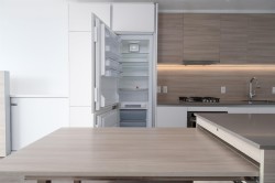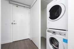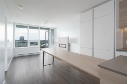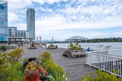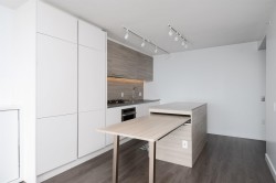 Experience luxury living at its finest in this rarely available, west-facing 1 bedroom, 1 bathroom unit at Riversky 2 by Bosa. Enjoy the breathtaking river views on your covered balcony deck. The unit has thoughtful features such as a slide-out kitchen table for 8 built into the kitchen island, a built-in fold-out bed located in the living room, and clever storage solutions throughout the unit. The sleek kitchen boasts a gas cooktop, wall oven, and built-in appliances. The location can't get better, as you're perfectly situated in vibrant New Westminster, steps from Skytrain, dining, shops, and the quayside boardwalk. Building amenities include gym, yoga room, rooftop terrace, and more. One storage locker is included. Your riverside oasis awaits, don't miss out!