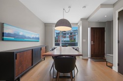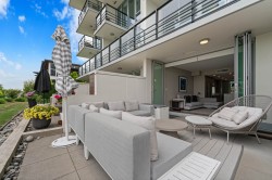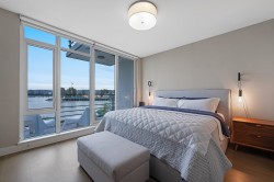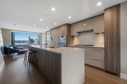 Experience waterfront living at The Peninsula by Aragon Properties, an iconic concrete building in the heart of Port Royal. This spacious 2-level waterfront townhome offers an oversized walkout private patio with stunning water views, gas bib, and fireplace—ideal for year-round entertaining. Inside features Gaggenau appliances, floor-to-ceiling windows, geothermal heating/cooling, and spa-inspired bathrooms with heated floors. Includes 2 parking stalls and a storage locker. Enjoy resort-style amenities with concierge, gym, and lounge. Steps to the Q-to-Q ferry, Quay, SkyTrain, shops & more. Open house: Saturday, February 14, from 2 - 4.