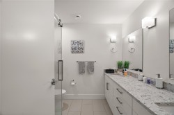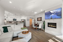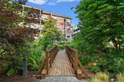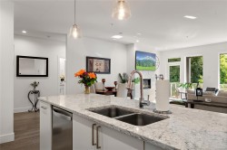 Modern Comfort at Regatta Park. This 2 bed/2 bath home blends style, function, and lifestyle. The bright open layout showcases a gourmet kitchen with quartz counters, premium cabinetry, gas range and oversized island, flowing into a living room centered by a sleek gas fireplace. The primary suite offers a walk-in closet with custom organizers and a spa-inspired ensuite with heated floors and double vanity, while a split-bedroom design provides privacy for guests or a home office. Standout features include an expansive 300+ sq.ft. deck spanning the full width of the home, ideal for morning coffee or evening entertaining. Additionally, there are 2 parking stalls (1 secure underground with bike cage, 1 outdoor), a separate storage locker, and pet-friendly bylaws. All this just minutes to Sidney, Swartz Bay Ferry Terminal and YYJ Airport—modern living with everyday convenience.
