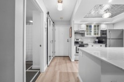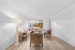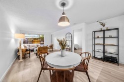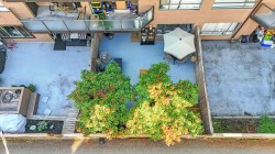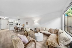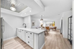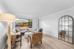 Effortlessly stylish and uniquely private, this 1-bedroom home in the Viewport offers modern indoor-outdoor living in the heart of Lower Lonsdale. Recently updated with light oak laminate flooring, quartz-style counters, new lighting and fixtures, the open layout feels bright and inviting. The standout feature is the 525 sq.ft. patio—perfect for entertaining, gardening or relaxing with your morning coffee. Enjoy a short stroll to the Shipyards, Seabus, breweries, and the Spirit Trail. Pets and rentals allowed, with parking and storage included.