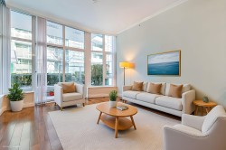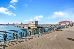 Stunning garden-level waterfront 1 Bed + Den residence in the Cascade at The Pier, offering rare private access with no need to pass through the lobby or elevators; step directly from your home onto the Shipyards Seawall. This thoughtfully designed residence features luxurious finishes throughout, including a gas cooktop, Bosch stainless steel appliances, Italian Scavolini cabinetry, and granite countertops. Comfort is elevated with central air conditioning, elegant crown moulding, hardwood flooring, and integrated LED lighting. The open-concept living and dining area is bathed in natural light, framed by floor-to-ceiling windows and soaring 10-foot ceilings. Residents enjoy exclusive access to Pier Hotel’s health club. Just steps from the vibrant Shipyards.