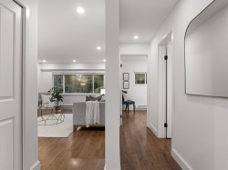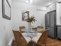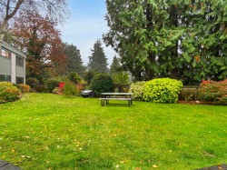 Great value for this updated 2BR / 1BA ground level home in Pemberton Heights - one of the North Shore's most desired neighbourhoods. An elegant living room features a wood fireplace, recessed lighting and a large window with a tranquil, treed view. The fully updated kitchen features stainless steel appliances, stone counter tops and lots of cabinet space with room for a dining table. The laundry room has additional storage and side by side machines. A clean, modern black and white theme in the fully updated bathroom. The primary bedroom has a private treed view and both bedrooms are well sized. This corner unit features a spacious enclosed patio area great for summer barbecues plus covered parking, storage locker. Pet friendly, reasonable number of cats/dogs allowed. Capilano IB catchment