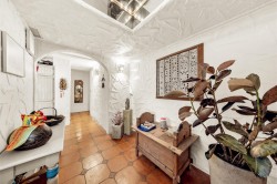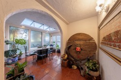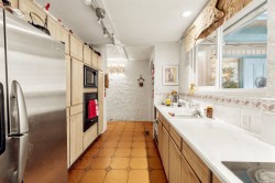 One level ease living for empty nesters looking for something different. Located on a large private cul-de-sac lot. It offers 2 bedroom including large master bedroom with walked-in closet. One skylight full bath has oversize spa bath and a 2 pieces powder room. Features Santa Fe decor, tile floor though out. Beautiful vaulted ceiling family room, wood burn fireplace, adjoining living area and gas fireplace. Formal dining also has skylight. There is an inviting in-ground pool, BBQ cabana, out door bar, enjoying a world of fun and relaxation. Total privacy. Needs works and upgrade to make it shines. By appointment only.