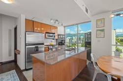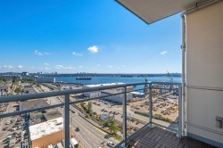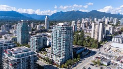 Corner-view living in the heart of Lower Lonsdale! This two-bedroom and two-bathroom home offers sweeping North Shore mountain and ocean views from the 20th floor. The open-concept kitchen flows into spacious dining and living areas, while the primary bedroom is privately set apart. Enjoy a gas range, AIR CONDITIONING, and a generous balcony perfect for morning coffee or sunset views. BONUS - AC/heat/gas incl in maint fee! Hotel-style amenities are available, including an indoor swimming pool, exercise centre, hot tub, and more. Steps to the Seabus, Lonsdale Quay, the Shipyards, boutique shops, cafés, and top-rated restaurants. Includes one parking stall, one storage locker, and pet and rental-friendly living.