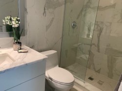 This one of a kind 2 Bed /2 Bath home has a huge Private Roof Deck complete with water and gas outlets for gardening a fire pit or BBQ! There is also a balcony on the main floor! Quality finishing in this waterfront property include Scavolini kitchen cabinets, Bosch appliances, crown moulding, 9 foot ceilings, air conditioning, and engineered hardwood throughout the main living areas-cozy carpet in the bedrooms. Live a carefree life style with the convenience of this walk to everything location. You will love living steps to the Seabus, Spirit Trail, casual and fine dining options, shops and services. Cascade owners enjoy use of the fitness facilities at the Pinnacle Pier Hotel including a 5 lane indoor lap pool, whirlpool, gym, steam, sauna, and sun terrace. Brand new and move in ready!