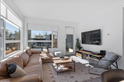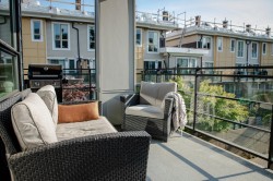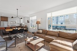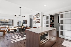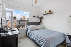 A rare 3 Bedroom, 2 Full Bath & Den corner unit at the Creston. This bright and functional East, West & South facing home offers almost 1,200 SF of living space with amazing open floor plan. Features 9' ceilings and in-floor hot water radiant heating. The sleek kitchen has loads of cupboard space, quartz counter-tops, SS appliances & a 5-burner gas cooktop. Centre island is perfect for casual dining. Spacious 140 SF patio offers plenty of opportunities for outdoor entertaining and BBQ. Centrally located on a quiet street, great walkable neighbourhood, on transit, close to schools, shopping, parks and trails! This home offers two parking, storage locker,Bike Room, Amenity Room in a pet and kid friendly building.