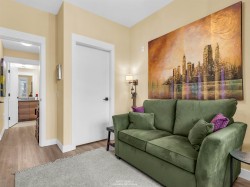 Welcome to Creston, a modern residence by award-winning Pennyfarthing Homes. This well-designed 2-bedroom, 2-bath home offers 909 sq ft of bright, functional living with an open-concept layout and in-floor radiant heating for year-round comfort. The stylish kitchen features quartz countertops, Bosch appliances, and a 5-burner gas cooktop, ideal for everyday living or entertaining. Spacious living and dining areas open to a generous balcony, while thoughtfully separated bedrooms provide privacy for professionals, downsizers, or small families. Close to schools, trails, shops, and transit, with both nature and city conveniences nearby, this home delivers a balanced North Shore lifestyle that’s hard to beat.