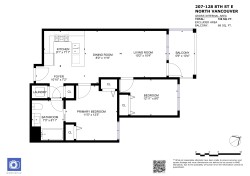 Introducing CREST by Adera - West Coast living nestled in Central Lonsdale! This beautiful 2-bed, 1-bath home feat Adera's innovative SmartWood construction & Quiet Home tech, for sustainable & peaceful living. The open-concept floor plan creates a seamless flow throughout, leading to a private covered deck, w/gas hookup. Individually controlled radiant floor heating, offers complete comfort control. Feat SS appliances, elegant tile in both the kitchen & bathroom, & central AC. This quiet, courtyard-facing is walking dist to shopping, restaurants, coffee shops, medical facilities, entertainment & easy DT access via the SeaBus, Amenities incl. well-equipped gym, elegant party room, secure bike storage, and children's play area. Pet ok. Incl 1 Parking, 1 Locker.