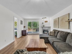 Welcome to your dream retreat in the heart of Indian River—this stunningly renovated, oversized 1-bedroom and den offers 1,050 sqft of luxurious living space, plus a massive 250 sqft sundeck that opens to breathtaking forest views and unmatched serenity. Nestled in a solid building, this home blends peace and privacy with modern elegance. Step inside to discover a bright open-plan kitchen, brand-new wide plank flooring and a cozy gas fireplace that anchors the living space. The versatile den is perfect as a nursery, home office, or creative studio. With 2 side-by-side parking stalls and both pet- and rental-friendly policies, this home ticks many boxes. Perfectly positioned just minutes from Parkgate Village, Dorothy Lynas Elementary, and a network of scenic walking trails to Deep Cove.