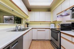 Welcome to Somerset Green! This spacious 959 sq ft unit offers 2 beds & 2 baths, along w/ a generous garden-level fully fenced patio, perfect for sipping your morning coffee. Relax by the gas fireplace & enjoy the convenience of a well-sized kitchen. The home includes in-suite laundry, in-suite storage, plus an additional storage locker. The primary bedroom is impressively large, featuring a walk-through closet that leads to the private ensuite. Recent updates incl. laminate flooring & new blinds. Somerset Green is known for its outstanding amenities: an indoor pool, hot tub, fitness room, arts & crafts studio, workshop, ping pong table, library, & beautifully maintained courtyard gardens. 55+ building. Ideally located within walking distance to shops and restaurants. Welcome home.