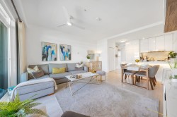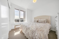 Stunning 2 bed & 2 bath CORNER unit PENTHOUSE w/views of the North Shore Mountains w/westerly views of spectacular sunsets. Built by the reputable MARCON! You'll appreciate the 9' ceilings & abundance of natural light with a lovely cross breeze. 114 sq ft of balcony space boosts enough space for dining alfresco! Enjoy entertaining in the chef's kitchen complete with island, polished engineered stone countertops & a premium appliance package. The primary bedroom can easily accommodate a California King bed. HEAT AND HOT WATER INCLUDED in your maintenance fee along w/ under ground parking, 2 storage lockers and bike room. With groceries, coffee shops, restaurants & pharmacy at your door step this neighbourhood truly caters to a seamless lifestyle. ROOF TOP deck, dog washing & play area.