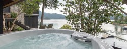 If viewing on Zillow please text/email agent directly. The main house features a fully equipped kitchen, five spacious bedrooms, and four bathrooms. The open-concept living, dining, and kitchen area is ideal for relaxed coastal living. Multi-slide patio doors open to several furnished outdoor patios, creating a seamless indoor-outdoor flow. Indulge in the private hot tub and sauna while soaking in breathtaking ocean and mountain views. Just steps from the main house is a charming one-bedroom guest cottage or studio with an en-suite and its own stunning views, perfect for guests or a quiet creative space. Enjoy your own private dock, complete with kayaks and paddleboards. Ample parking is available for multiple vehicles. Gas, Hydro, and High-speed internet are included.