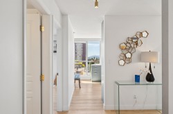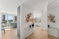 Gorgeous renovated 1040 sqft 2 bedroom 2 bathroom dream condo with Panoramic Ocean Mountain and Iconic Stanley Park Lions Gate VIEWS at the highly sought after Piermont. A boutique concrete building in the heart of Central Lonsdale. This home has everything in two's: 2-beds, 2-primary suites, 2 balconies, 2 side by side parking! RARE North West Corner unit redesigned with floor-to-ceiling windows, wide-plank flooring, beautiful kitchen renos, gas stove & Fireplace, S/S appliances, In suite laundry and fantastic bedroom separation. Walk everywhere NO car lifestyle, shops, transit, cafes, restaurants, groceries all out your door. Lonsdale quay, shipyards & sea bus waterfront just down the hill. Large storage locker, pet & rental friendly, Roofing upgrade paid for.