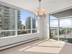 Rarely available SW corner suite in The Symphony – one of Central Lonsdale’s most desirable concrete buildings with only 4 units per floor. This spacious 2 bed, 2 bath home offers 1,130 sq. ft. of beautifully renovated living space (2022), featuring Fisher & Paykel and Bosch appliances, engineered hardwood, heated bathroom floors, custom window treatments, and more. Enjoy stunning southwest views of sunsets, city lights, mountains, and Lions Gate Bridge from two patios. Includes 2 secure parking stalls. Pet-friendly and just steps to all of Lonsdale’s shops, cafes, parks, and transit. Truly move-in ready!