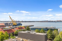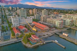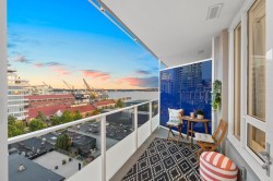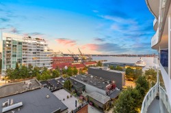 Welcome to this sophisticated 2 bed, 2 bath view home in Promenade at The Quay. This BRIGHT CORNER HOME features PANORAMIC OCEAN, CITY & MOUNTAIN VIEWS and a thoughtfully designed layout with an abundance of natural light. The GOURMET KITCHEN features integrated Bosch appliances, GAST STOVE and a large breakfast bar that opens up the living area, making it perfect for entertaining. The primary suite features a SPA-LIKE ENSUITE and WALK-IN CLOSET. The OVERSIZED COVERED PATIO is ideal for unwinding and enjoying the harbour views. Built by award-winning Polygon, this LUXURY CONCRETE BUILDING is just six years old and features AC, and hotel-like AMENITIES including concierge, gym, party room, outdoor lounge, and a dog wash station. Includes one parking.
