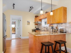 Gorgeous Restored A-Listed Heritage Home! Beautifully restored 1912 Edington residence with Arts & Crafts charm, ideally situated on a 50 x 137 south-facing corner lot with lane access, a double-car detached garage, and stunning water, Metrotown & 2nd Narrows Bridge views. This 3-bed, 2-bath home features a primary bedroom with a private balcony, cozy living room with a gas fireplace, renovated kitchen & dining area, and a bright family room with double doors to a large back deck. Heritage details shine with refinished fir floors, moldings, and more! Sunny verandah and elevated setting offer timeless curb appeal. Close to schools, parks, shopping & transit. Potential for coach house development (confirm with CNV). A rare blend of history and modern comfort — move-in ready!