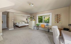 Set on over 1/2 an acre in the heart of the Uplands, this landmark property offers rare privacy and nearly 7,200 sqft of comfortable living space. Generous proportions throughout are ideal for family life, multi-generational living, or thoughtful customization over time. 5 beds and 5 baths include a spacious bed on the main with exterior access and ensuite (& sauna), alongside expansive living/dining areas and a rec/flex space that could be reconfigured. Upstairs you'll find a sprawling primary retreat with sunroom, walk-through closet, and additional versatile areas, plus 2 more oversized bedrooms - 1 w/ balcony and exterior access - complemented by a media area and south-facing deck. Further opportunity to reimagine the lower level that has its own kitchen and bath. The south-facing backyard framed by established gardens creates a serene and secluded setting with your own direct access to Uplands Park. A timeless residence offering scale, privacy, and exceptional potential.